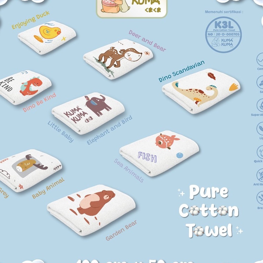 Kuma Kuma Pure Cotton Towel (Handuk Bayi Premium)
