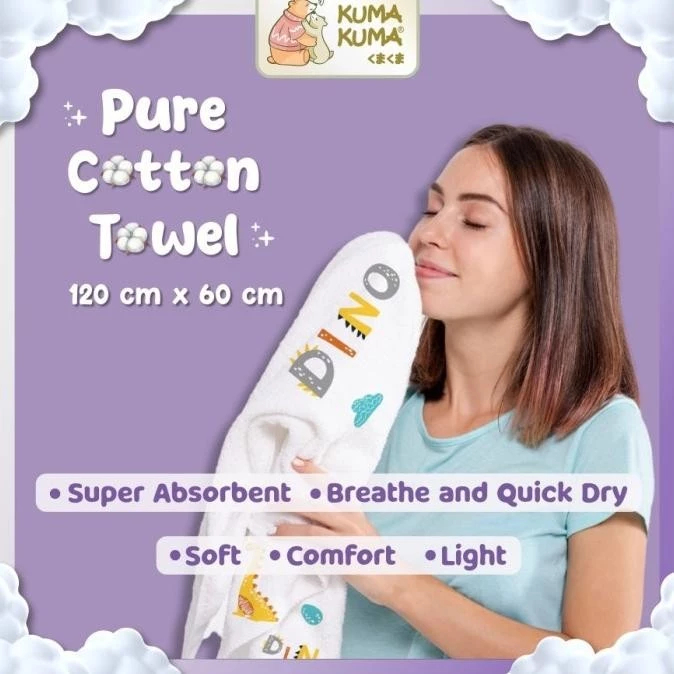 Kuma-Kuma & Little Palmerhaus Little Terry Handuk Bayi EXTRA SOFT Pure 100% Cotton 50 x 100cm