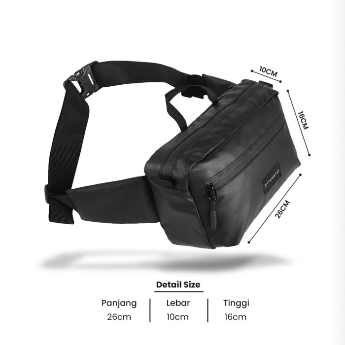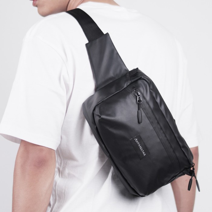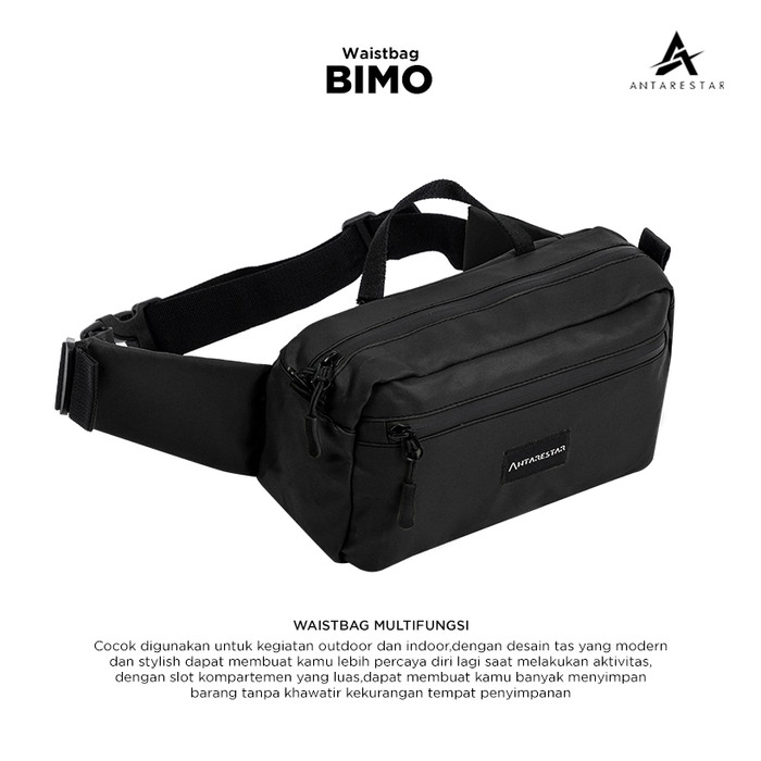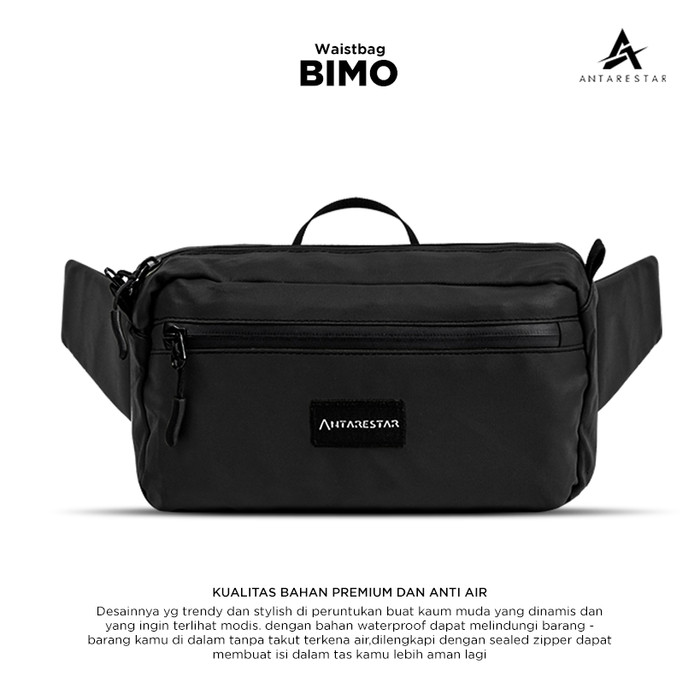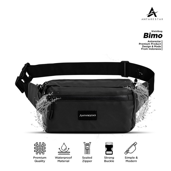 TAS SELEMPANG PRIA WANITA ANTI AIR WAISTBAG WATERPROOF BIMO ANTARESTAR HITAM