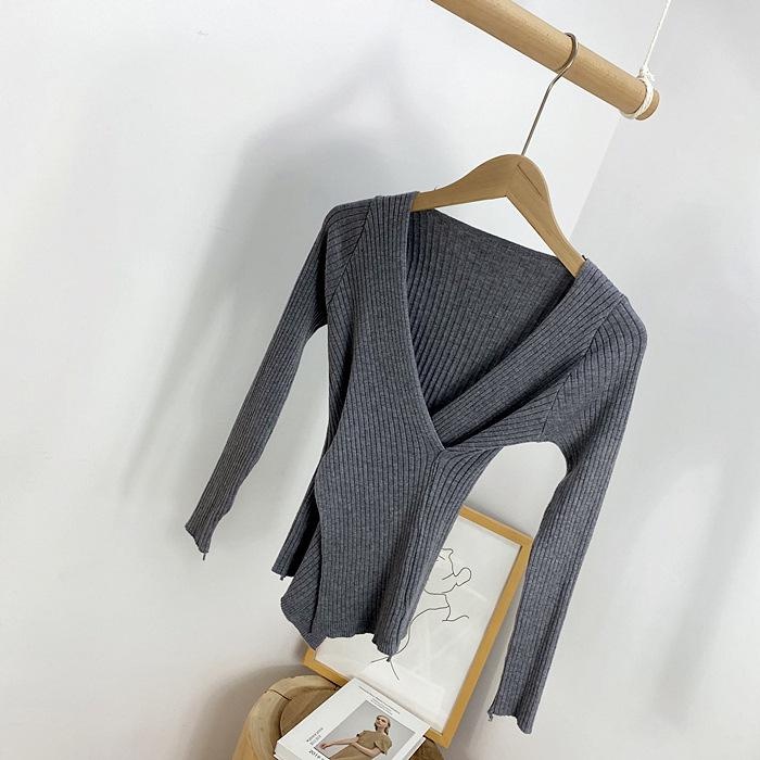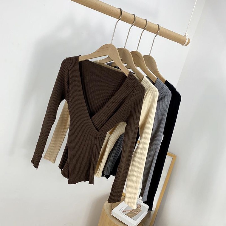 Blackpink Baju Rajut Wanita V Neck Lengan Panjang Atasan Wanita 4099