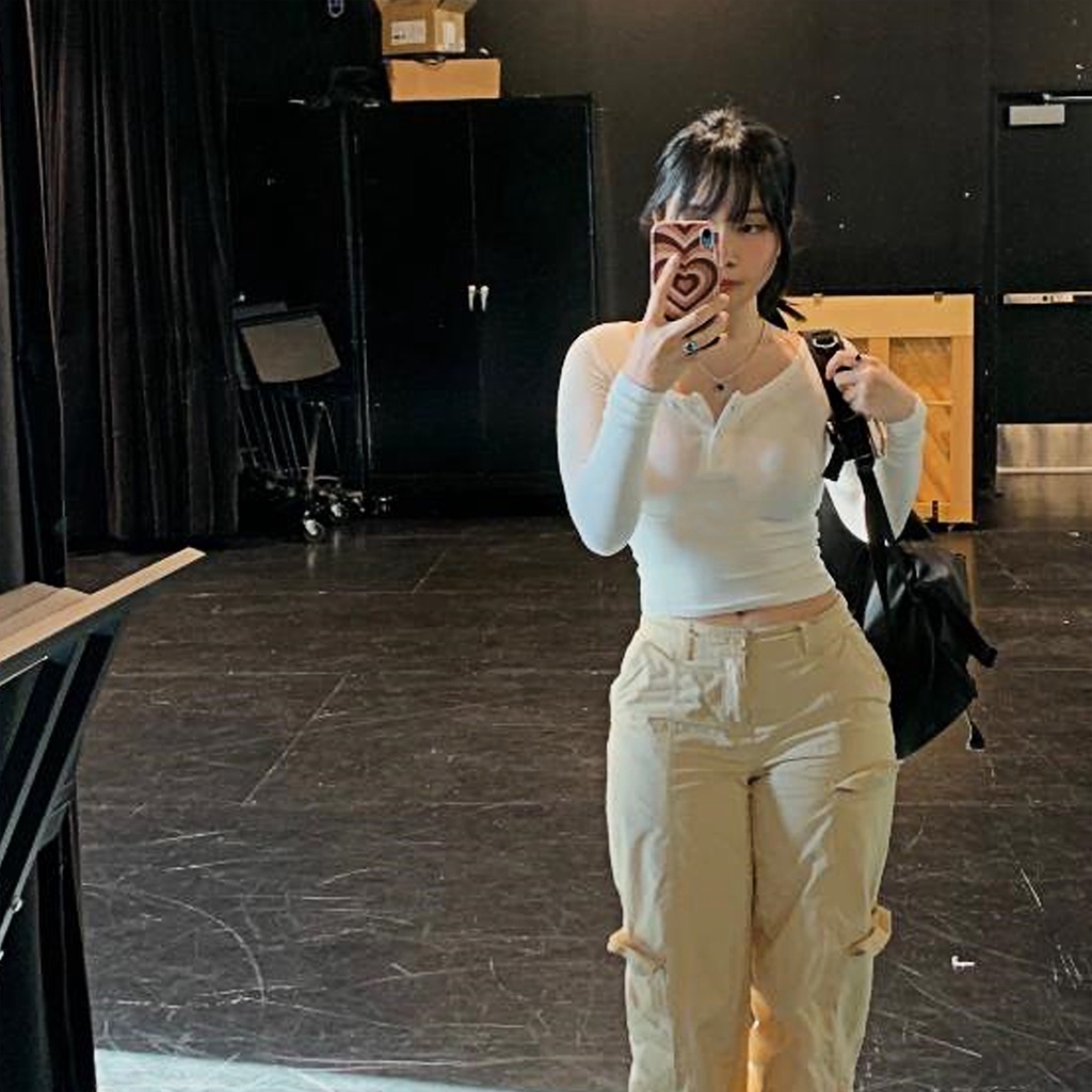 Blouse Korean Scop Neck Rib With Buttons #2144