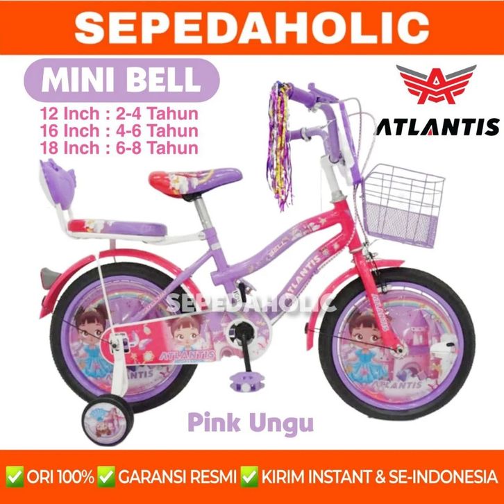SEPEDA ANAK PEREMPUAN ATLANTIS BELL SEPEDAH VELION MINI KERANJANG CSV2 UKURAN 12 18 INCH USIA 2 SAMPAI 8 TAHUN