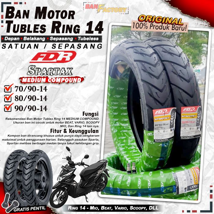 Ban Motor Ring 14 Tubeless FDR Spartax Ring 14 Tubles Ban Motor Mio Beat Vario Scoopy Ring 14 Tubles