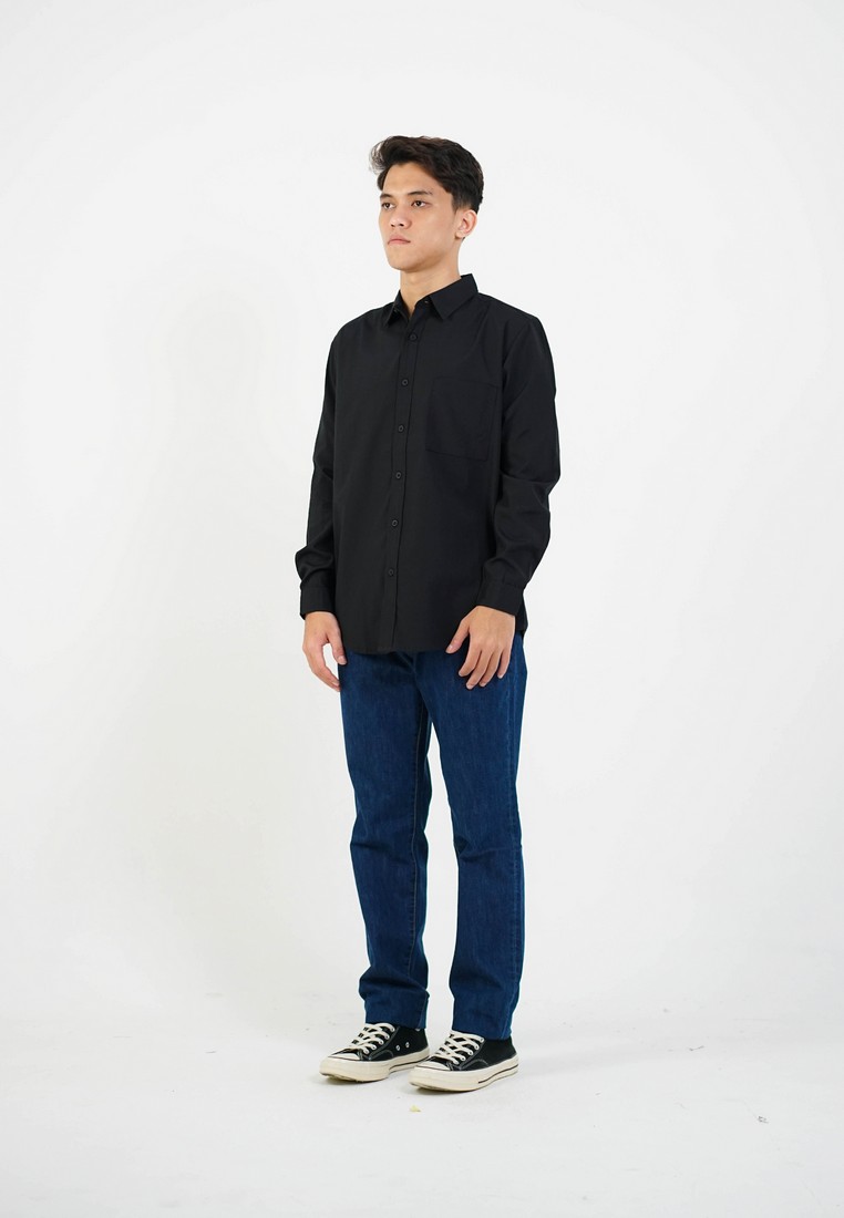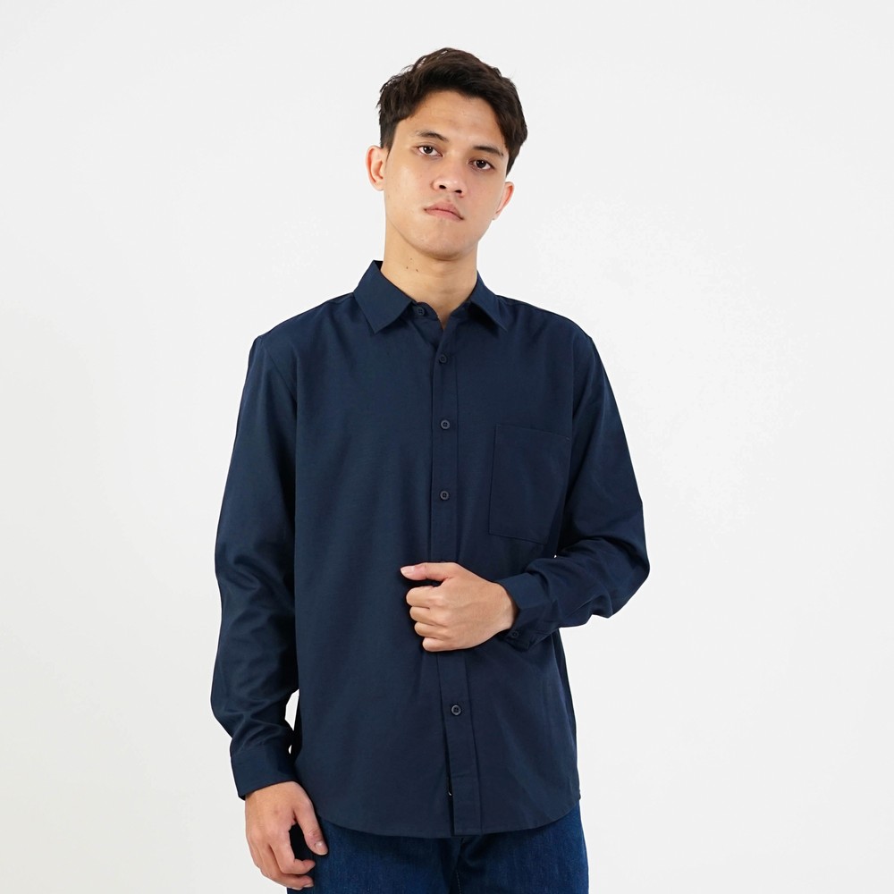 3Second Men's Basic Shirt Long Sleeve Regular Fit Linen Sea OL-C130225
