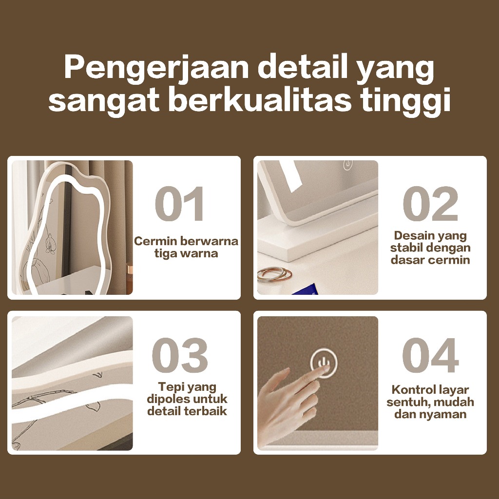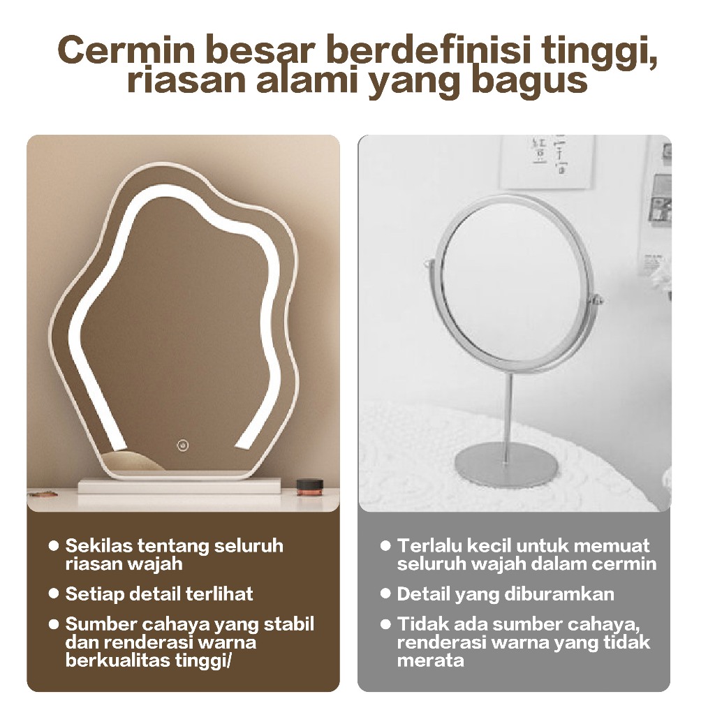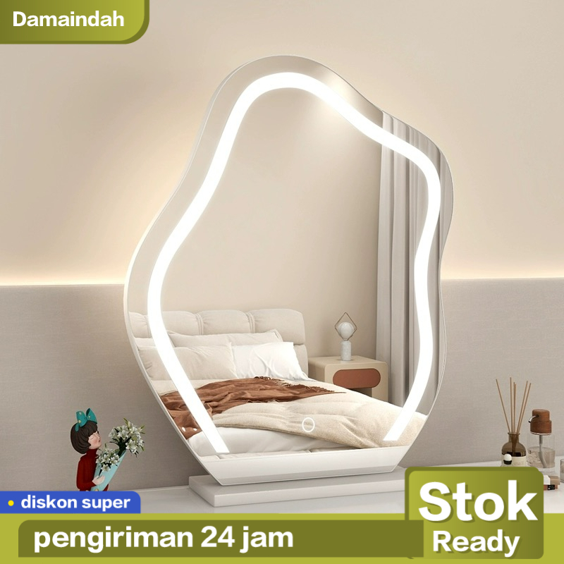 Damaindah Cermin Awan / Cermin Rias Meja Rias / Cermin Rias LED / Cermin Rias Duduk / Cermin Oval Penginderaan Cahaya /