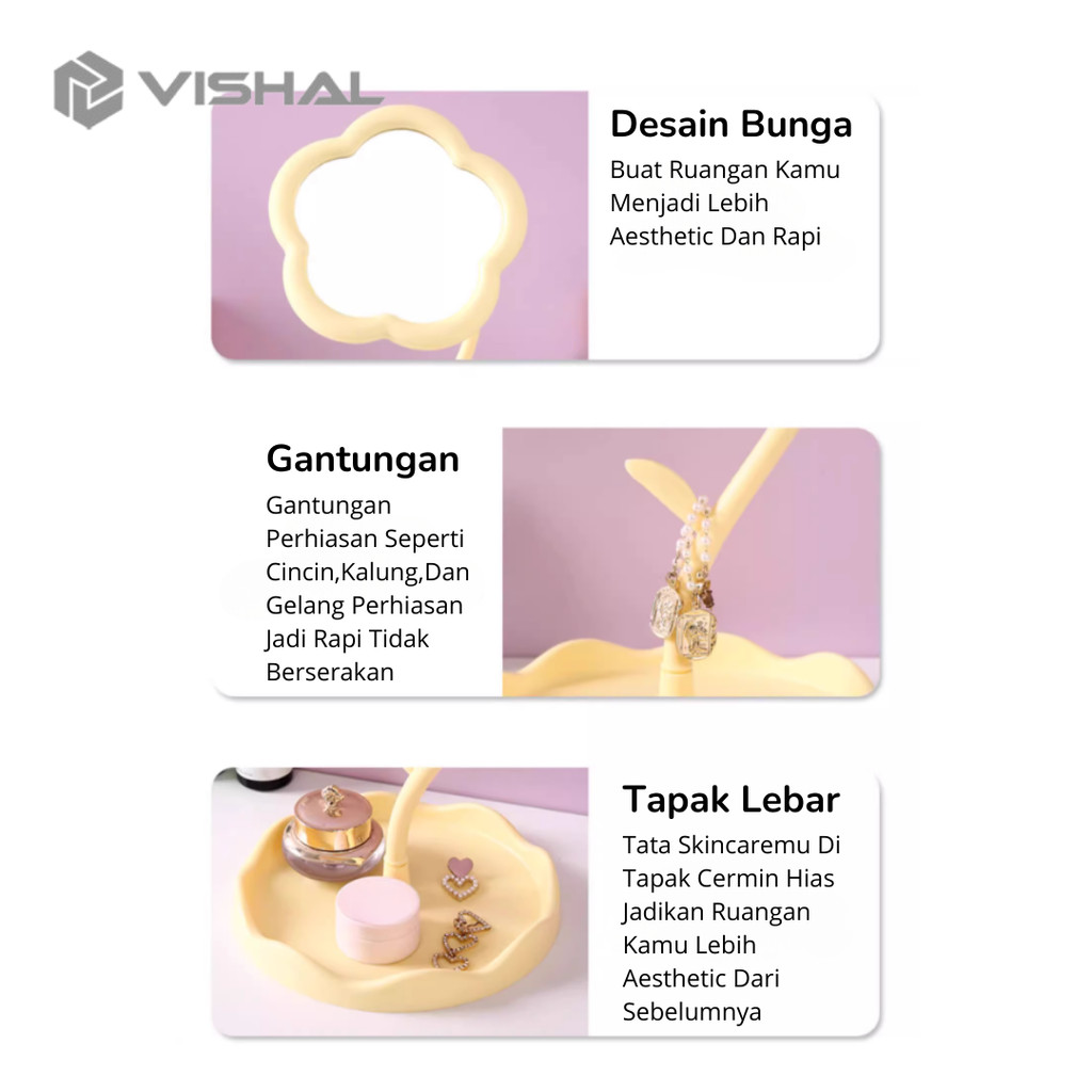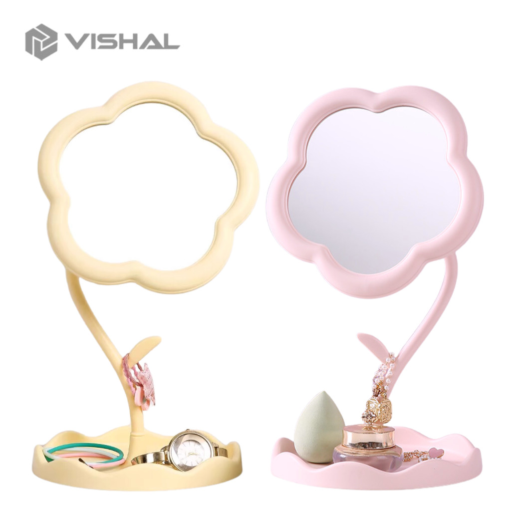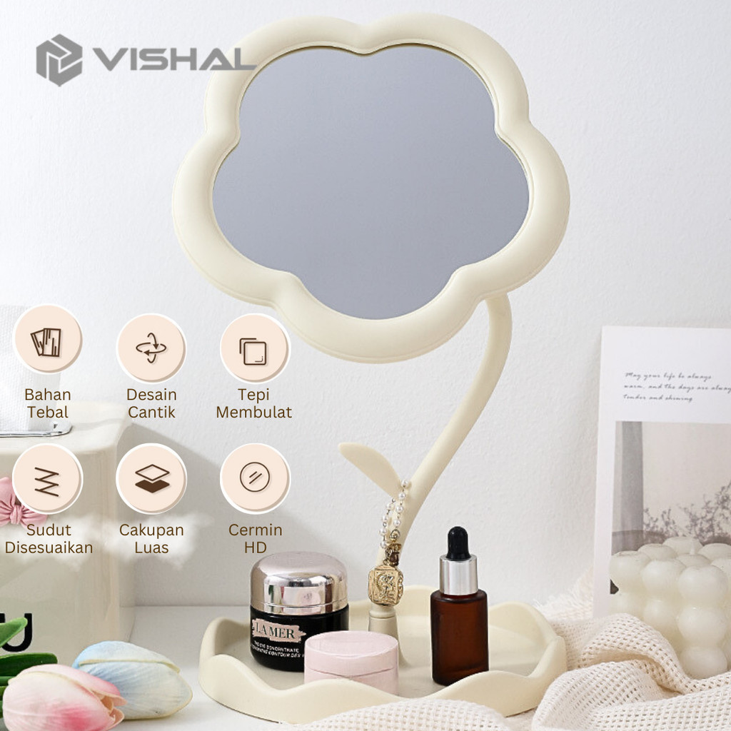 VISHAL Cermin Bunga Standing Mirror Rotating Cermin Meja Serbaguna / Stand Mirorr Flower Kaca Meja Rias Makeup Cermin Ae