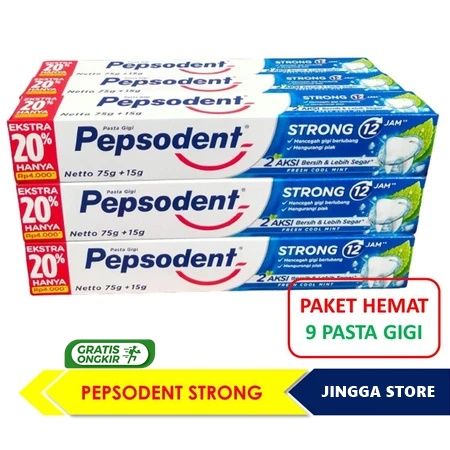 Paket Hemat 9 Pepsodent Strong Odol 12 Jam Pasta Gigi Pencegah Gigi Berlubang 75gr + 15 Gr Extra 20 Persen Termurah