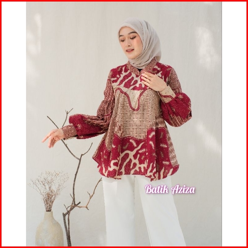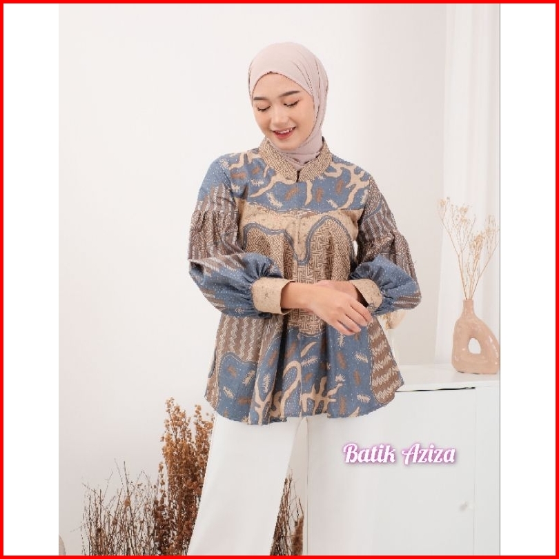 Batik Wanita Modern Atasan Batik Wanita Blus Listia Bahan Katun By Batik Aziza