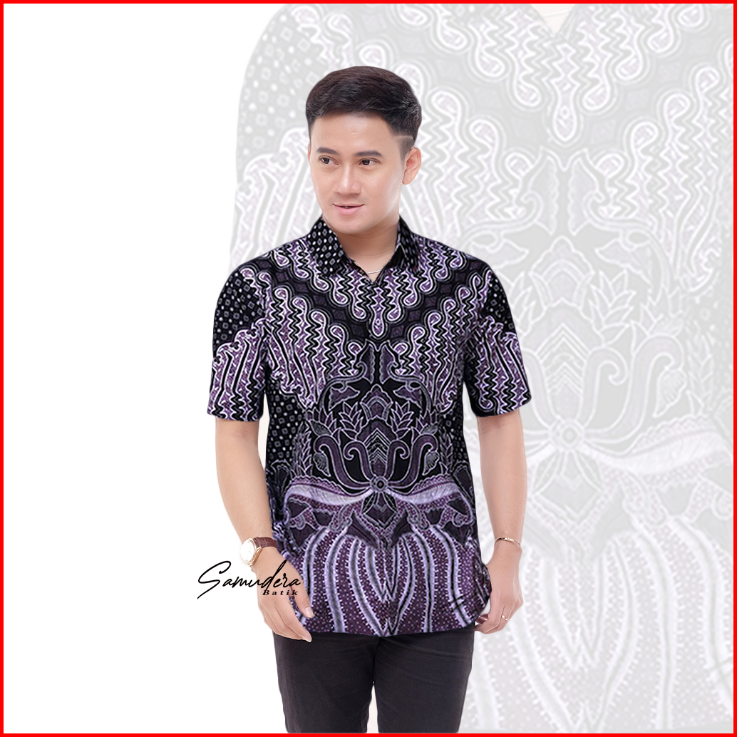 Kemeja Batik Pria Lengan Pendek Premium Size M L Xl Xxl Samudera Batik Kode 009 Reguler Fit