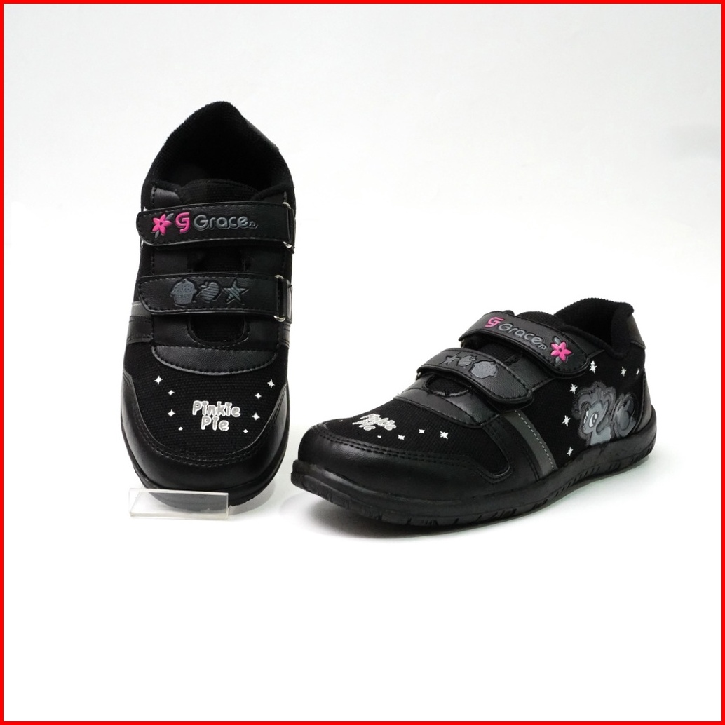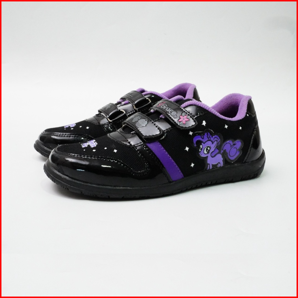 Grace Pony 26-35 Sepatu Santai Anak Cewek Perempuan Hitam Sepatu Sneaker Perekat Pony Sekolah