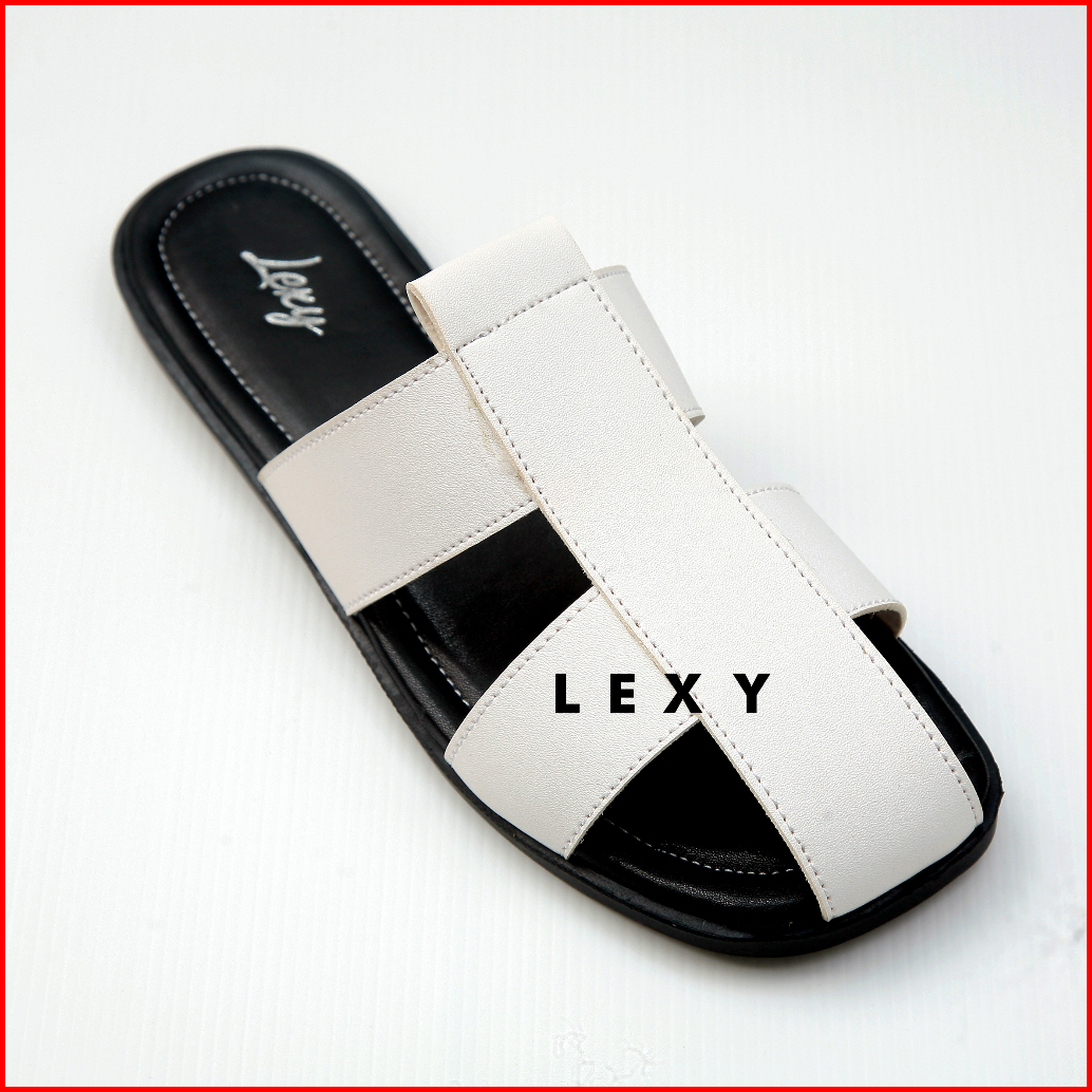 Lexy Aileen Sandal Wanita Teplek Flat Kulit Warna Pastel
