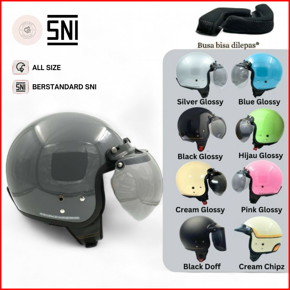 Helm Bogo Dewasa Classic Polos Solid Sni Hds Half Face Klasik Cepol Hijab Wanita Pria