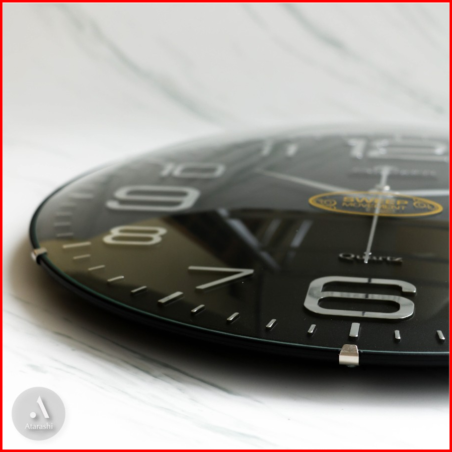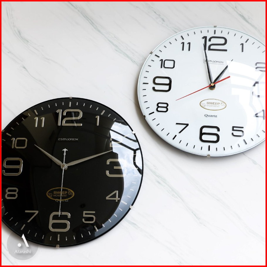 Jam Dinding Estiloren Pt S2140 D 34.5cm Kaca Cembung Quartz Wall Clock Angka Timbul Senyap Sweep Halus