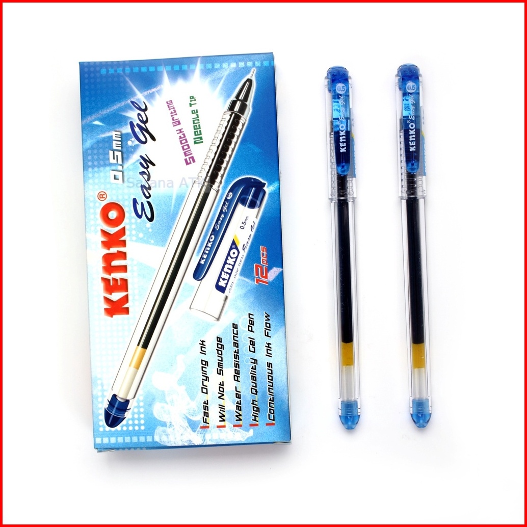 Kenko Pulpen Easy Gel 0.5mm Hitam Biru Harga Per Lusin Isi 12pcs
