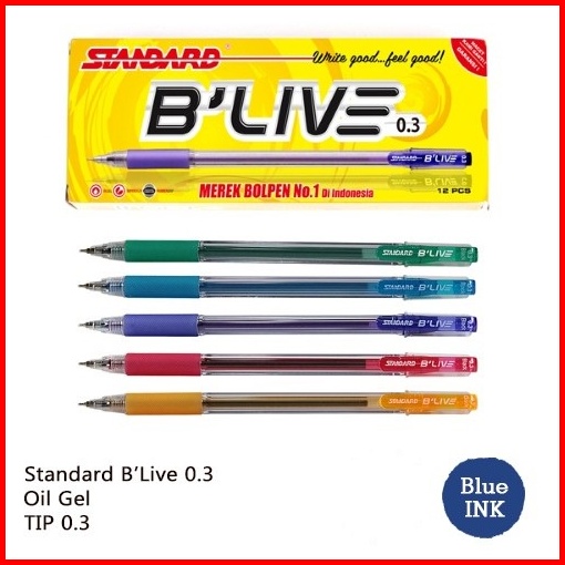 Pulpen Pen Pena Standard B 0.3 Hitam Biru 12pcs