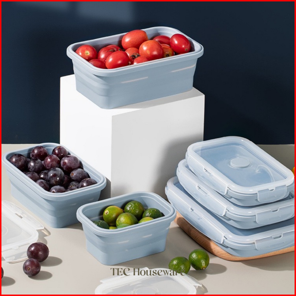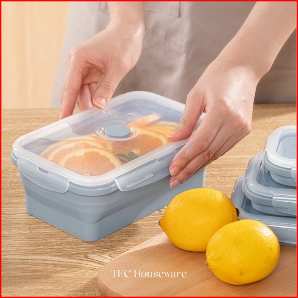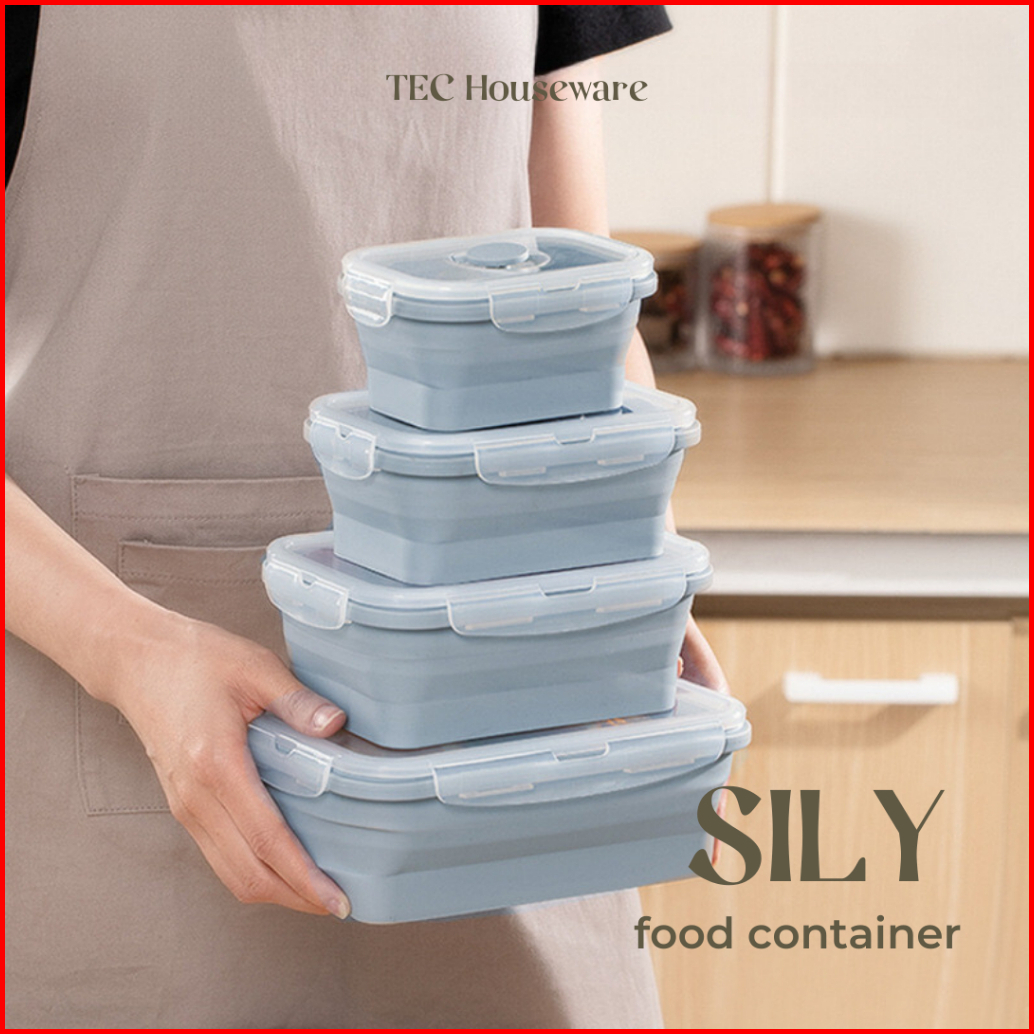Tecsily Kotak Makan Silikon Food Container Silicon Expandable Tempat Makan Silikon Wadah Lipat Silikon