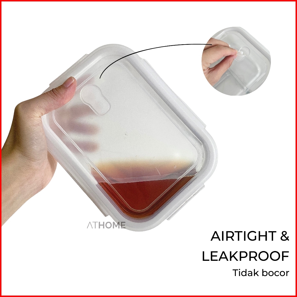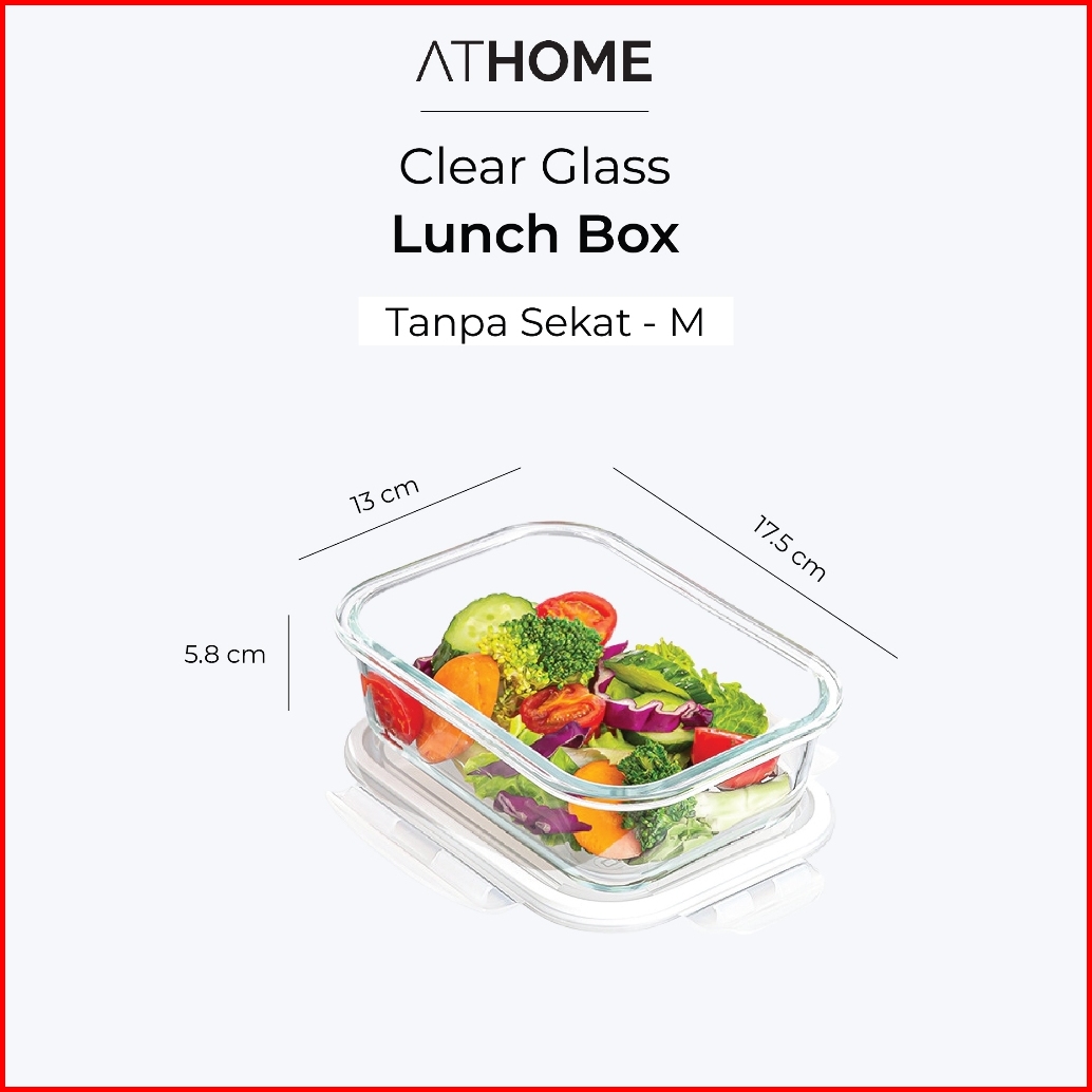 Athome Clear Glass Lunch Box Kotak Makan Kaca Sekat Kedap Udara Anti Bocor
