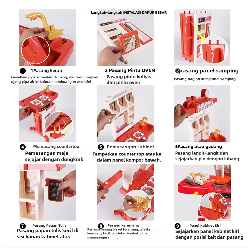 [86/54PCS]95CM Mainan Kitchen Set Jumbo dengan Wastafel Mainan Anak Spraying Mist Kitchen