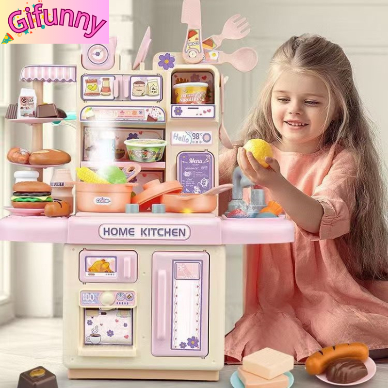 Gifunny Mainan Dapur Anak Kitchen Set Jumbo Simulasi dengan Wastafel, Efek Cahaya & Asap, Hadiah Ulang Tahun
