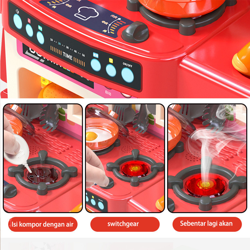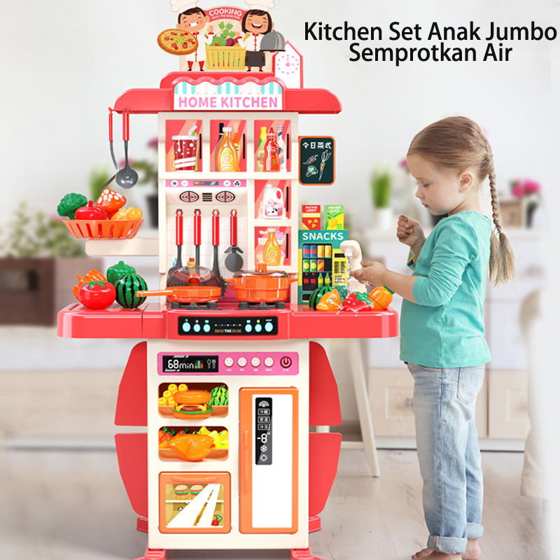 95CM Mainan Kitchen Set Jumbo Dengan Wastafel Mainan Anak Spraying Mist Kitchen[86/54PCS]