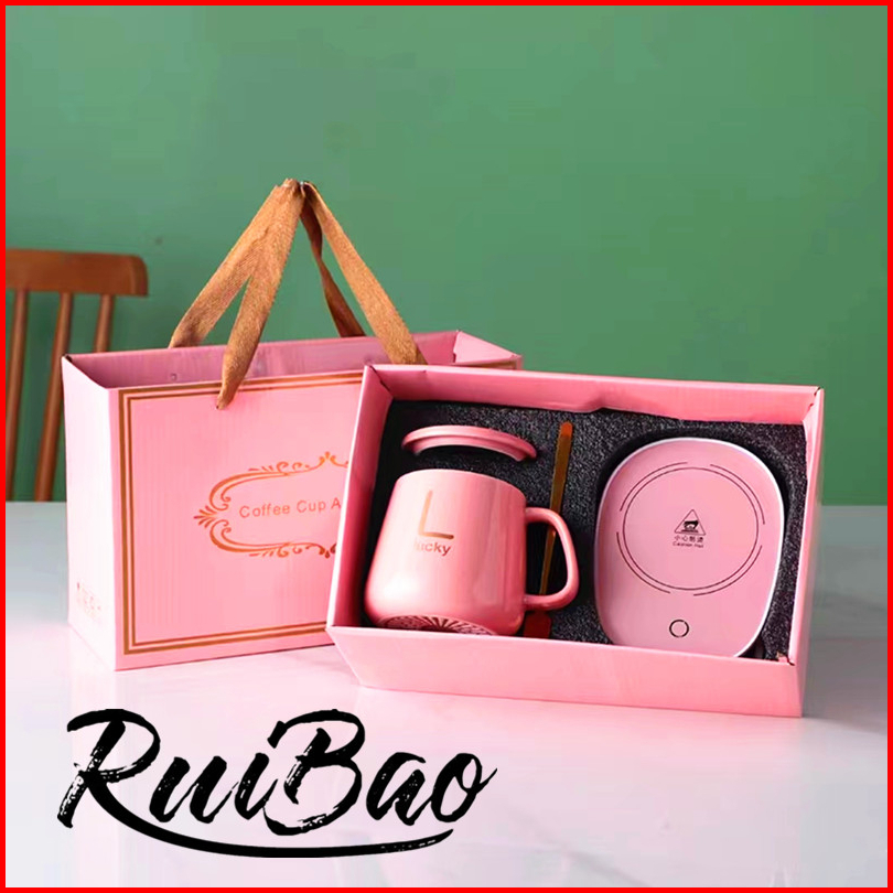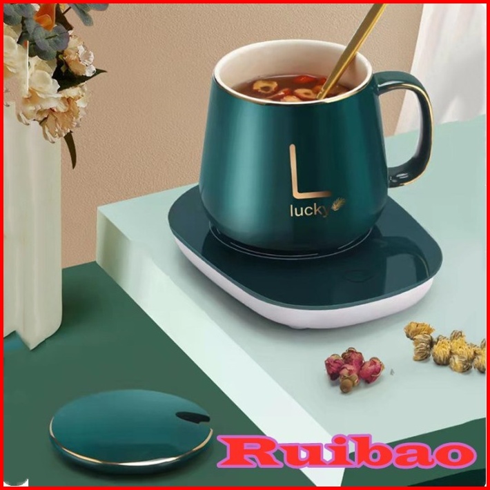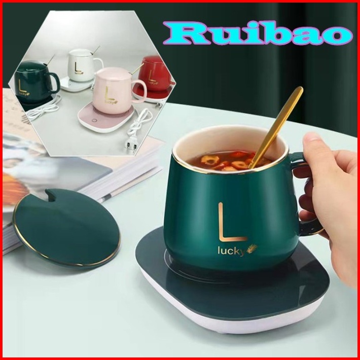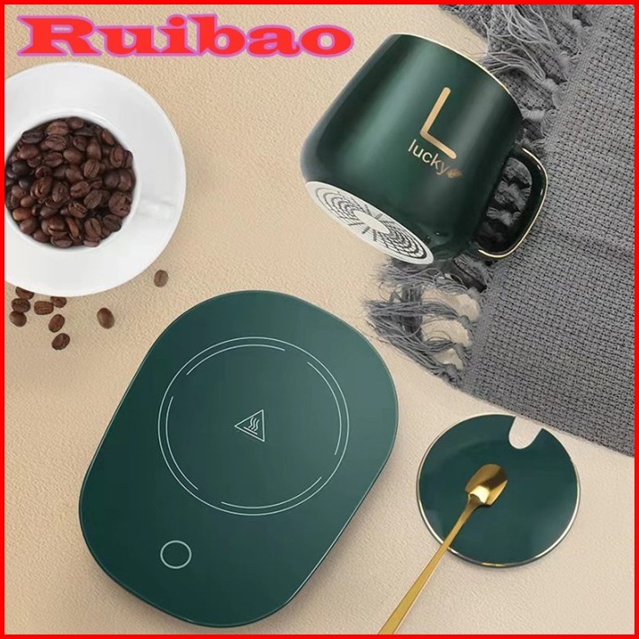 Ruibao Mug Cangkir Elektrik Set Keramik Pemanas 55 Derajat Penghangat Kopi C027