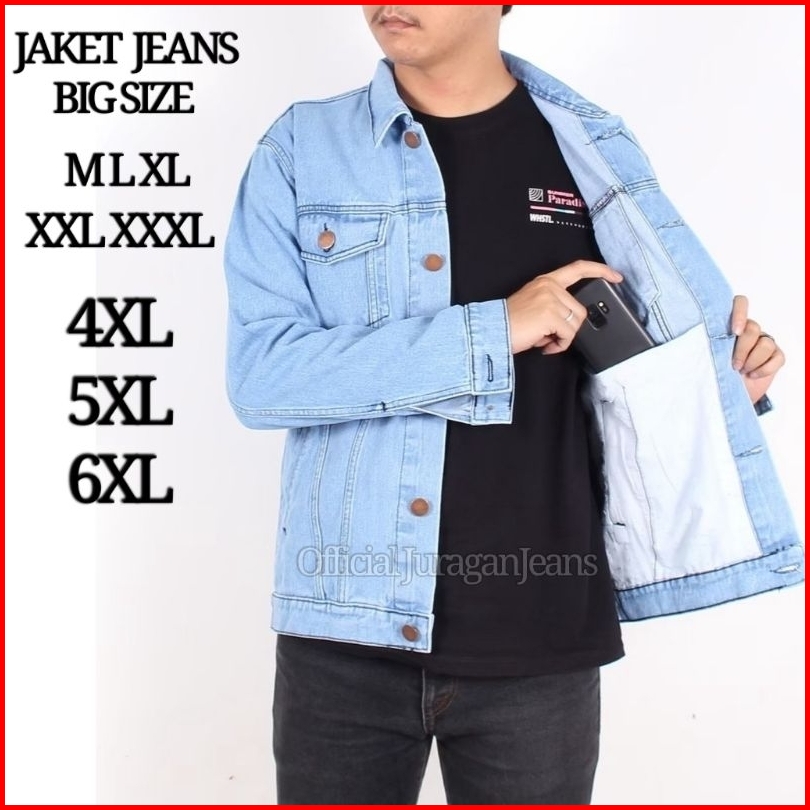 Ready Jaket Jeans Denim Jumbo Big Size M L Xl Xxl Xxxl 4xl 5xl 6xl Pria Cowok Premium Terbaru 2023 Warna Biru Muda Biobl