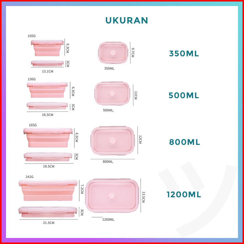 Unisoo Kotak Makan Silikon Satuan Lipat Expandable Tempat Makan Bahan Silicone Lunch Box Cf047