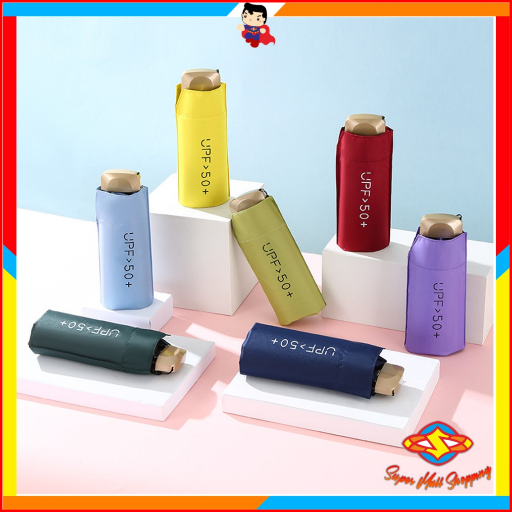 Sms Payung Lipat Anti Uv Upf 50 Motif Polos Folding Umbrella Ultra Violet Payung Tabir Surya Hujan Atau Panas Free Pouch