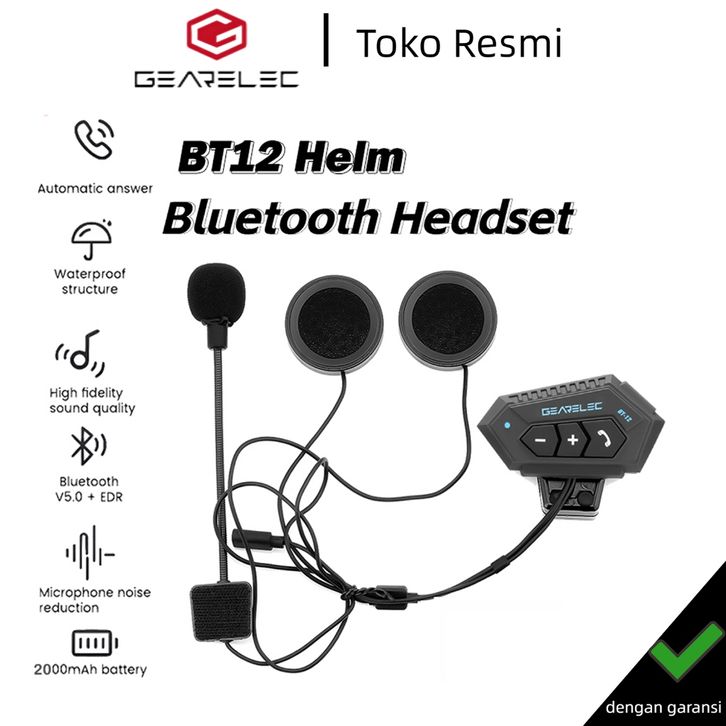GEARELEC BT12 Bluetooth 5.0 Helm Headset Waterproof Nirkabel dengan Baterai 2000mAh NOT intercom