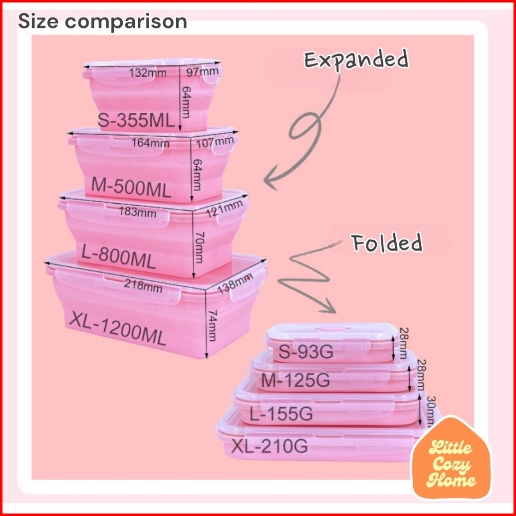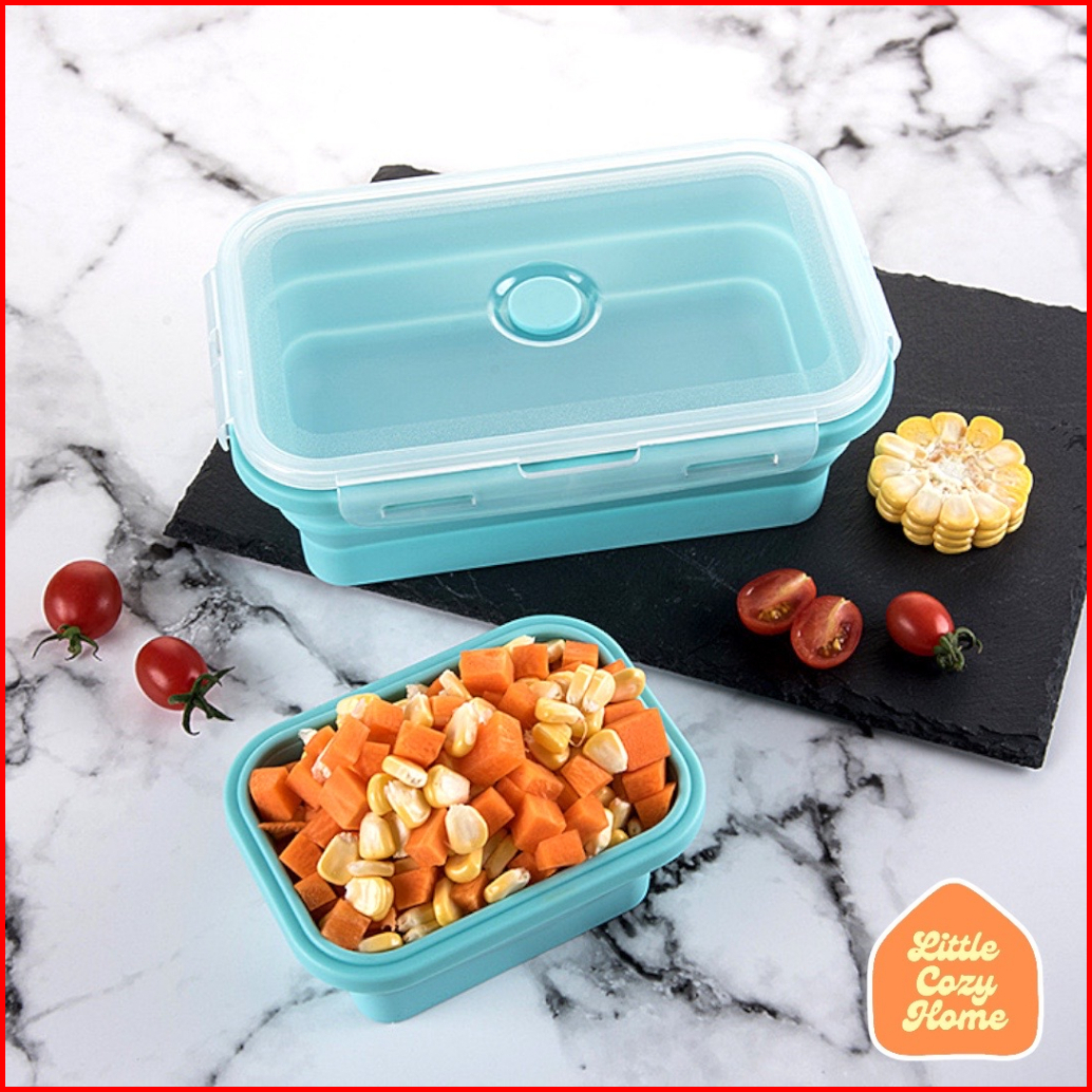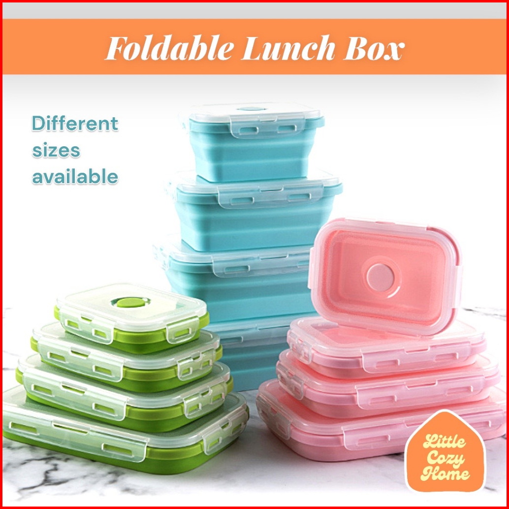 Foldable Lunch Box Kotak Makan Lipat Satuan Eceran Expandable Bahan Container Silicone Lunch Box Wadah Makan Lipat Silik