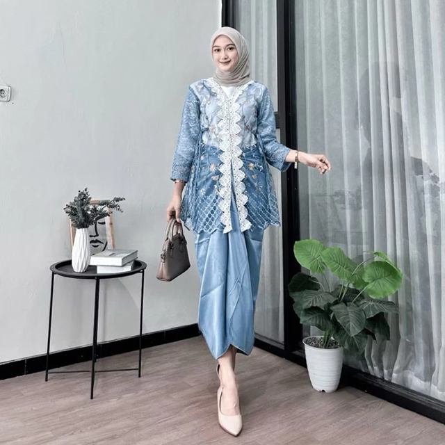 Batik Couple Termurah - One Set Wanita Kekinian Oneset Zafira Tulle Gardenia Warna Mix Renda Full Chantily Halus Setelan