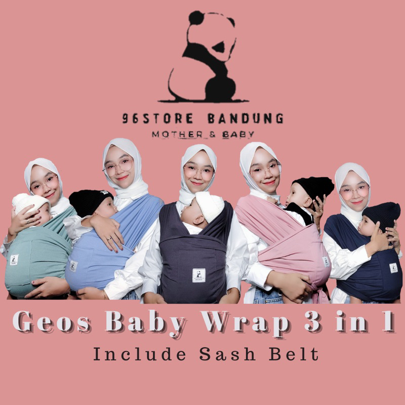 Gendongan Bayi Depan M Shape Baby Wrap 3in1 Geos Baby Instan Premium With Sash Belt