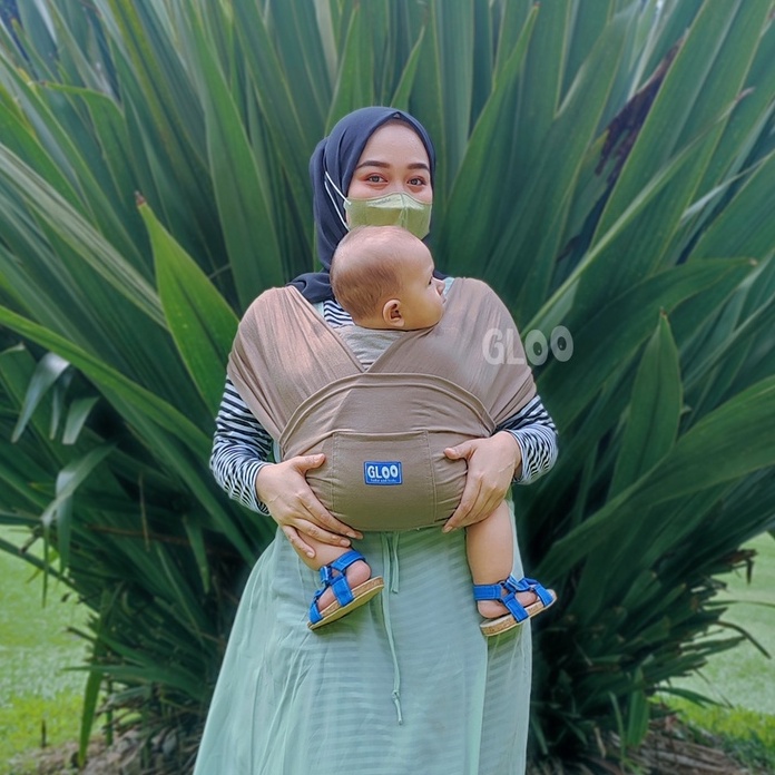 Gendongan Bayi Depan M Shape Baby Wrap 3in1 Geos Baby Instan Premium with Sash Belt GLOO Almond