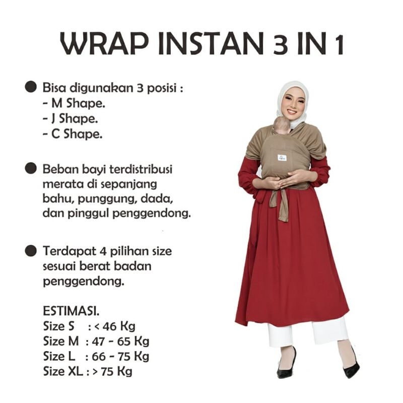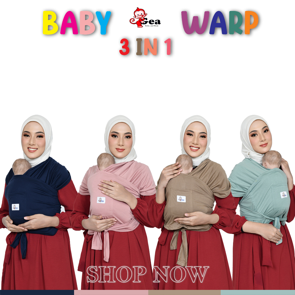 Gendongan Bayi Depan M Shape 3in1 Samping Baby Wrap Geos Instan Premium Whit Sash Belt GEA