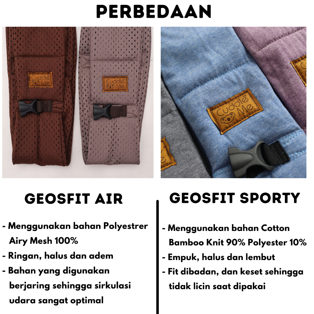 Cuddleme Geosfit Gendongan Samping Instan - Air & Sporty Spessa Solid Bayi Newborn Praktis Murah