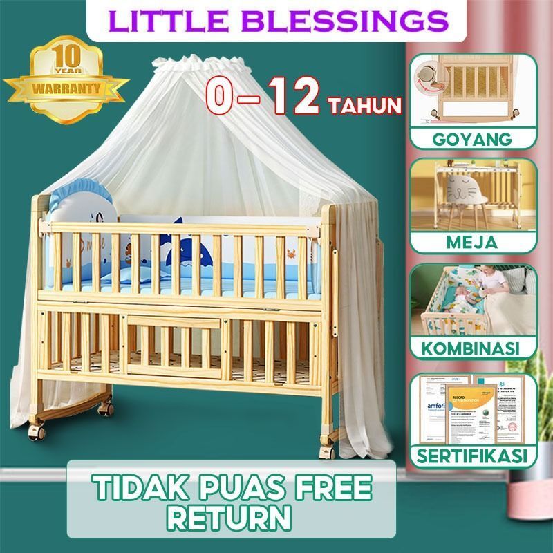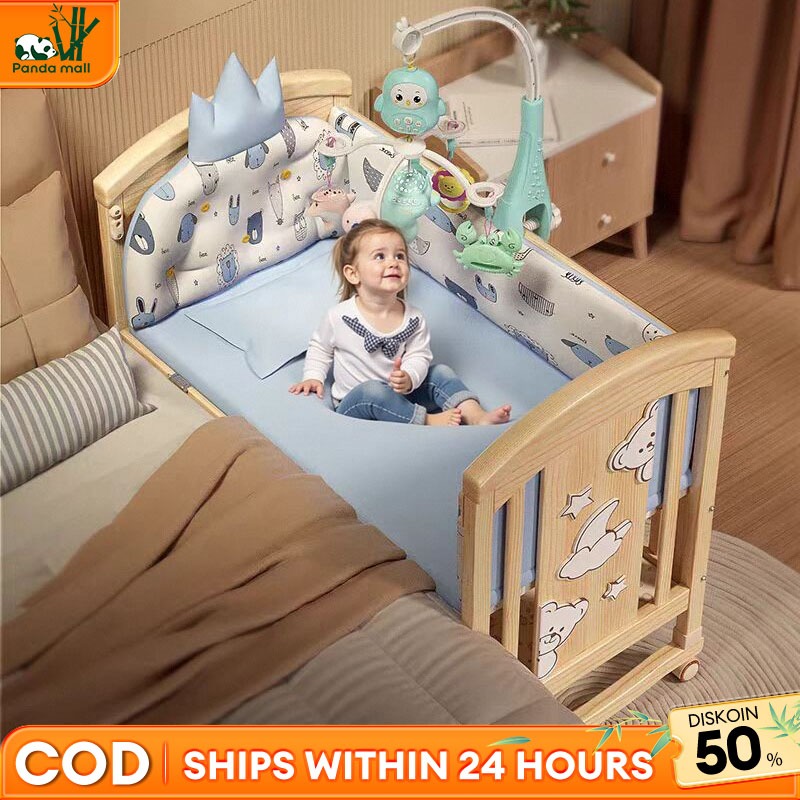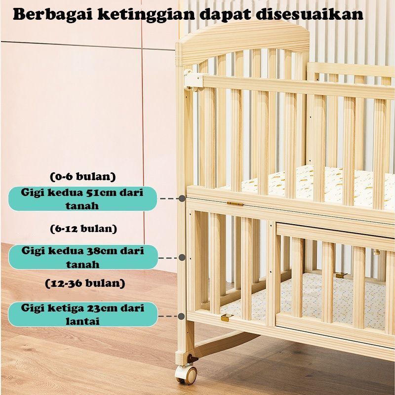 Tempat Tidur Bayi Kayu Solid Ranjang Bayi Kayu 0-3 Tahun baby box Bisa dilipat Tempat Tidur Anak