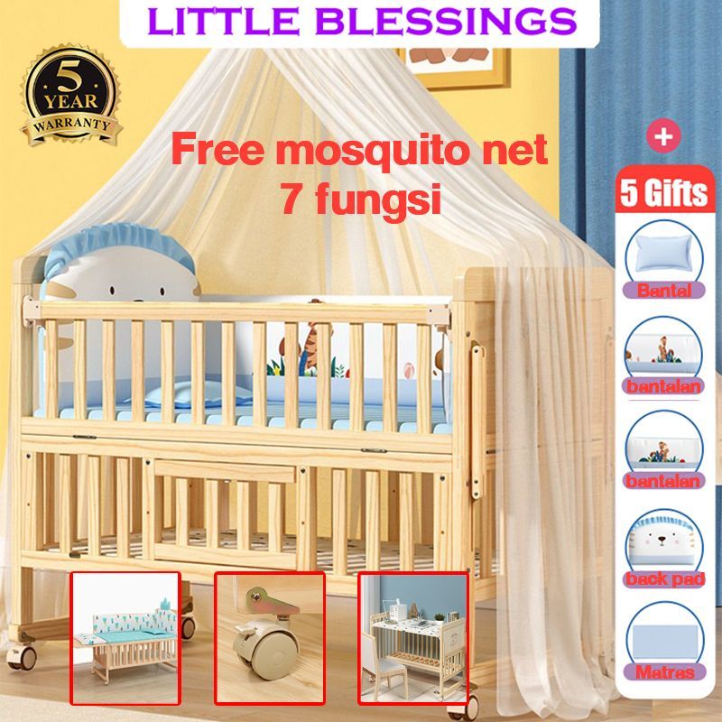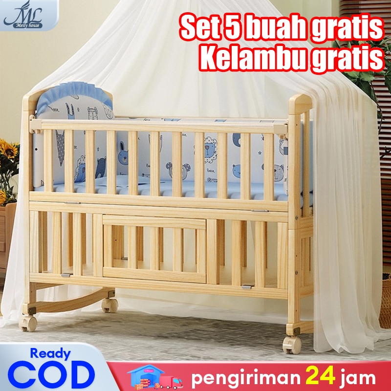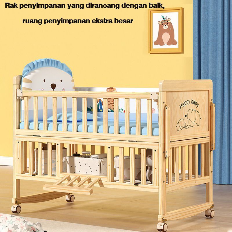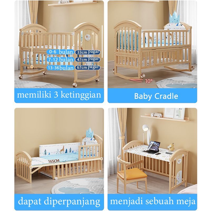 Tempat Tidur Bayi Ranjang Bayi Box Bayi Tempat Tidur Kayu Solid Multifungs Kotak Bayi 0-10 Tahun
