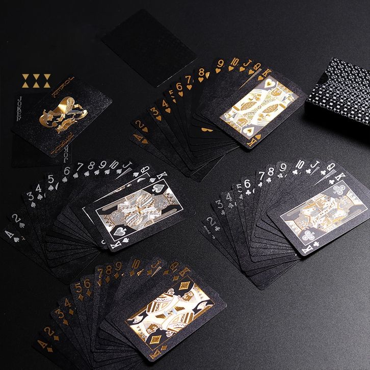 NL - Kartu Remi Anti Air PVC Poker Plastik Hitam Foil Poker Premium Permainan Papan 54 Sheets