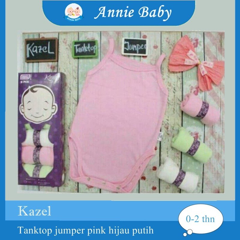 Annie Baby Singlet Jumper Tanktop Kutung Anak Bayi Perempuan Kazel Warna Hijau - Putih - Pink