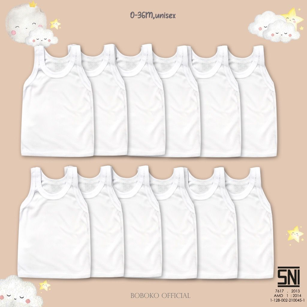 Singlet Bayi Bahan Adem Lembut Series Polos Putih ATAU Warna isi 1 lusin=12 pcs