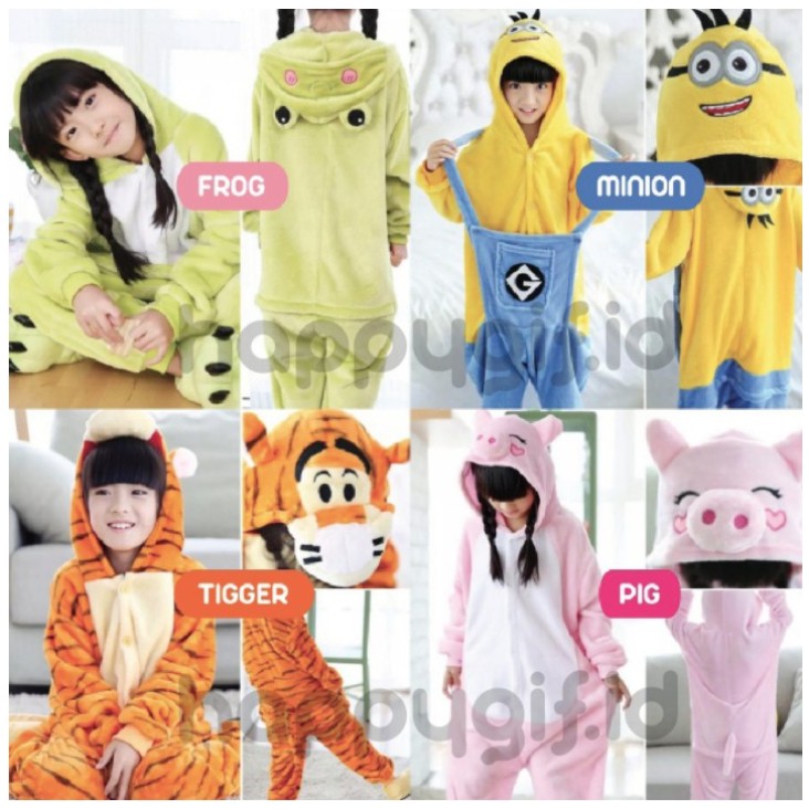 ONESIE KOSTUM PIYAMA KID ANAK KARAKTER, TIGGER, COW , PENGUIN, dll