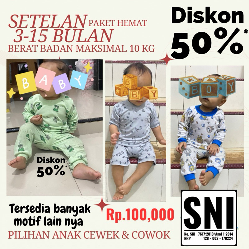 PAKET ISI 7 SETEL BAJU ANAK BAYI (3-15 BLN ) maksimal bb 10 kg bahan pe shof