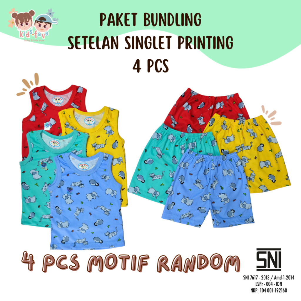 PAKET BUNDLING ANAK MIX 4 SET 0-3 TAHUN / SETELAN BUNTUNG SINGLET PRINTING RANDOM 0-3 TAHUN (SS01)