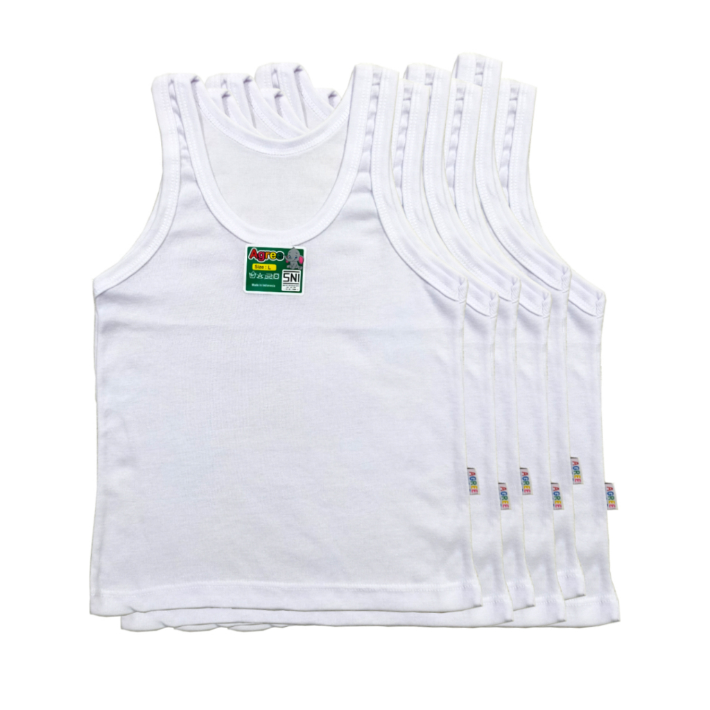 6 Singlet Anak AGREE PUTIH - POLOS - LIST POLOS - Kaos Dalam Bayi Dan Anak
