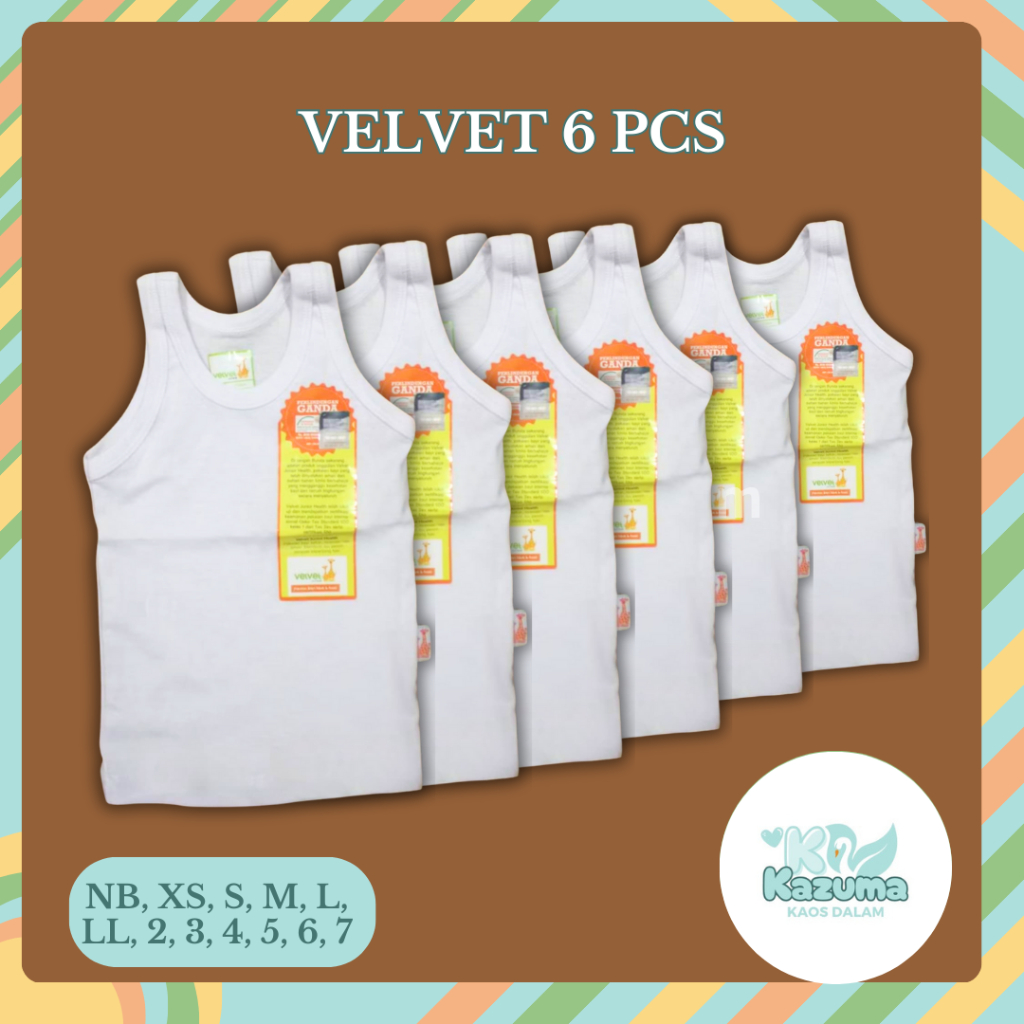 Singlet Bayi New Born Velvet Junior Laki laki Perempuan 6 Pcs / Ukuran NB XS S M L LL 2 3 4 5 6 7