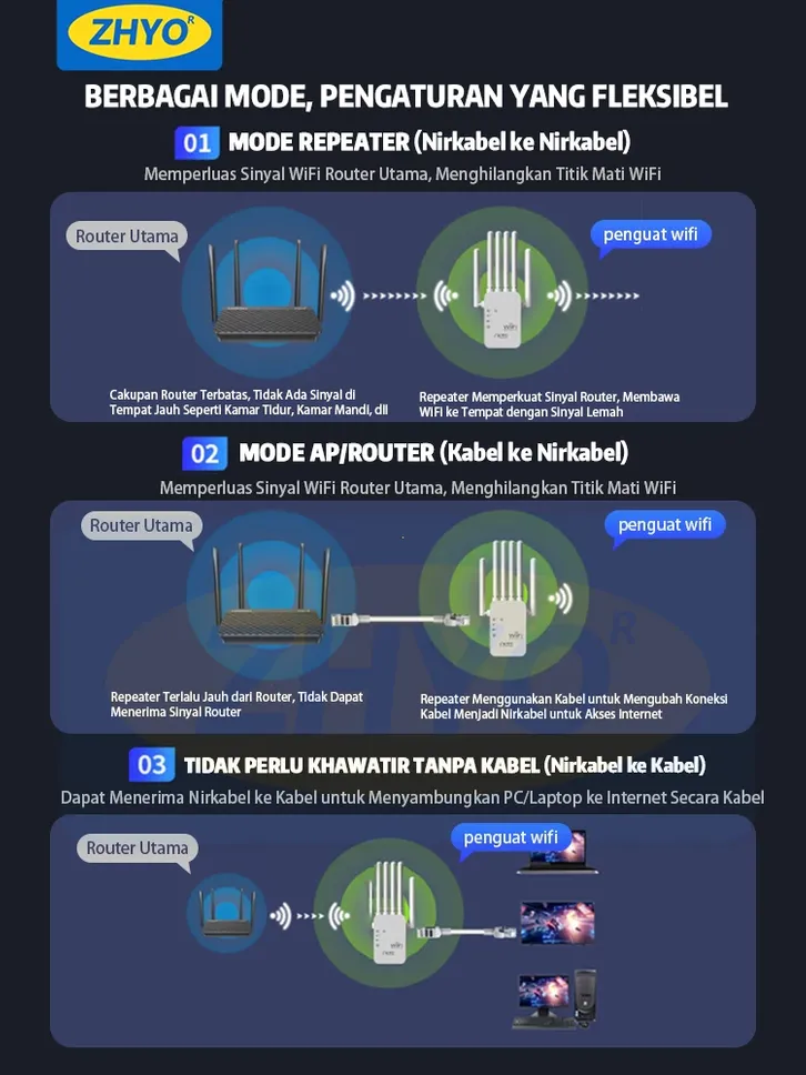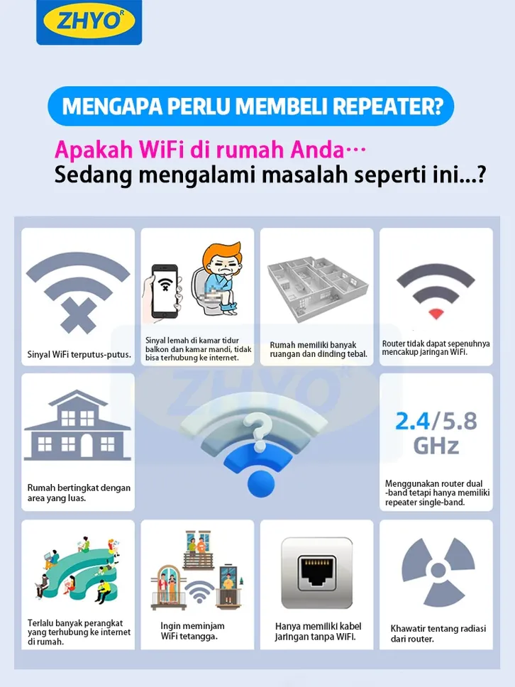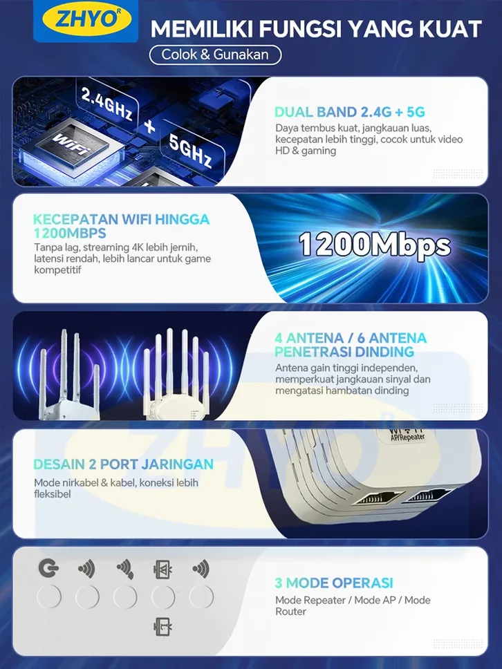 FREE ONGKIR /ZHYO 1200Mbps dual-band 2.4G, penguat sinyal WiFi penguat router, repeater, plug and play,