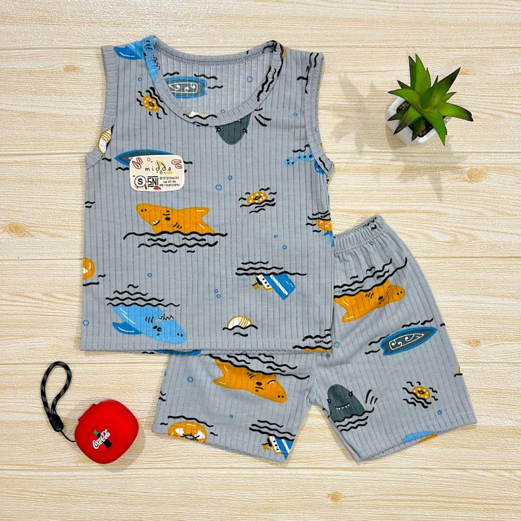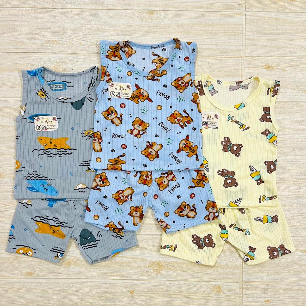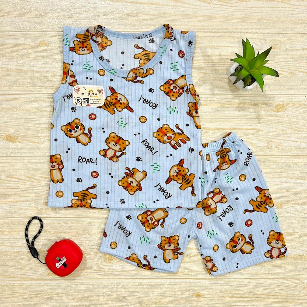 Paket BUNDLE 3 PCS Setelan Singlet Anak Motif Animal Printing Usia 0-2 Tahun Drop Needle Sudah SNI