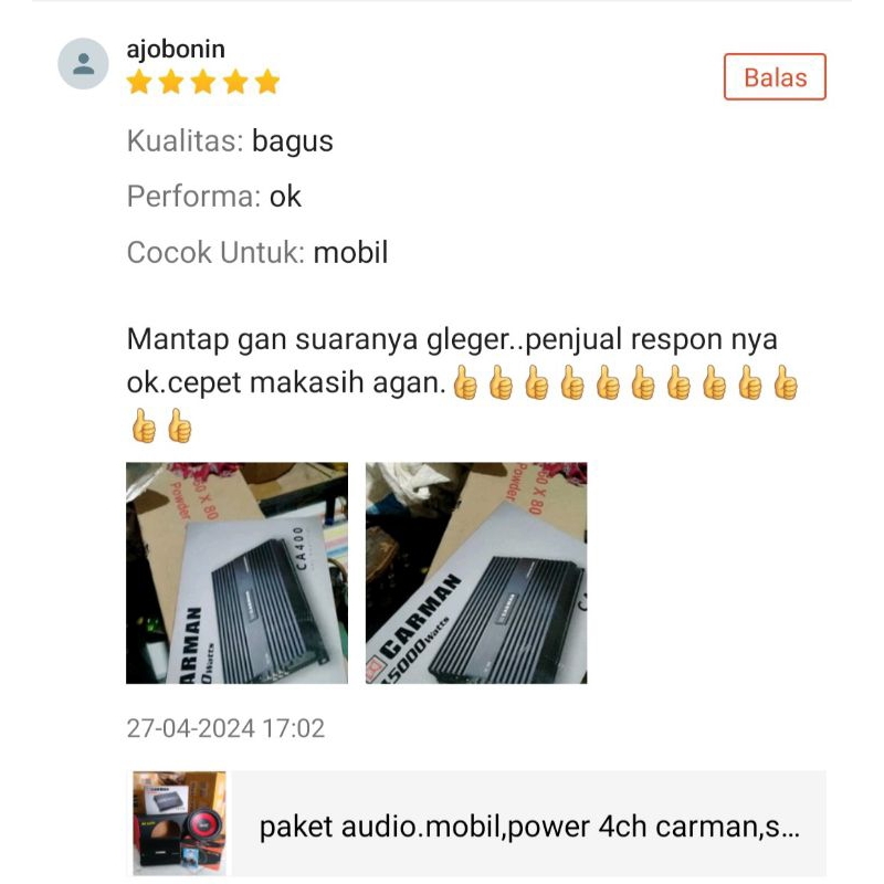 Paket Audio Mobil Power 4Ch Carman Subwoofer 12In AVX Box 12In