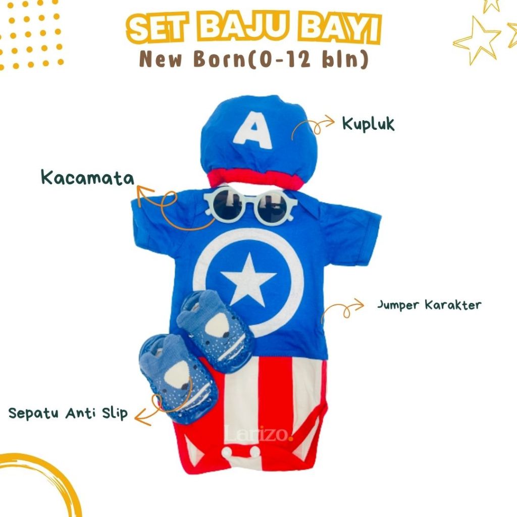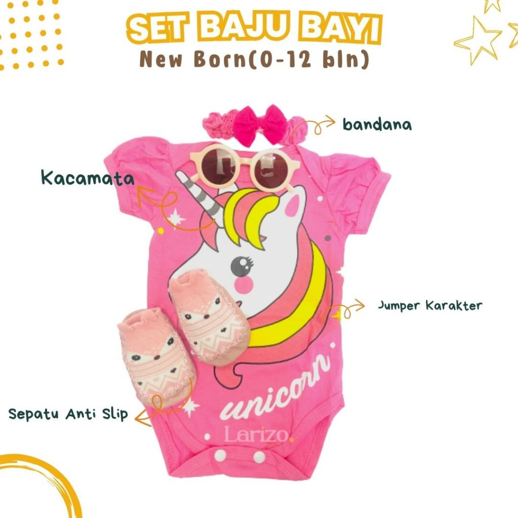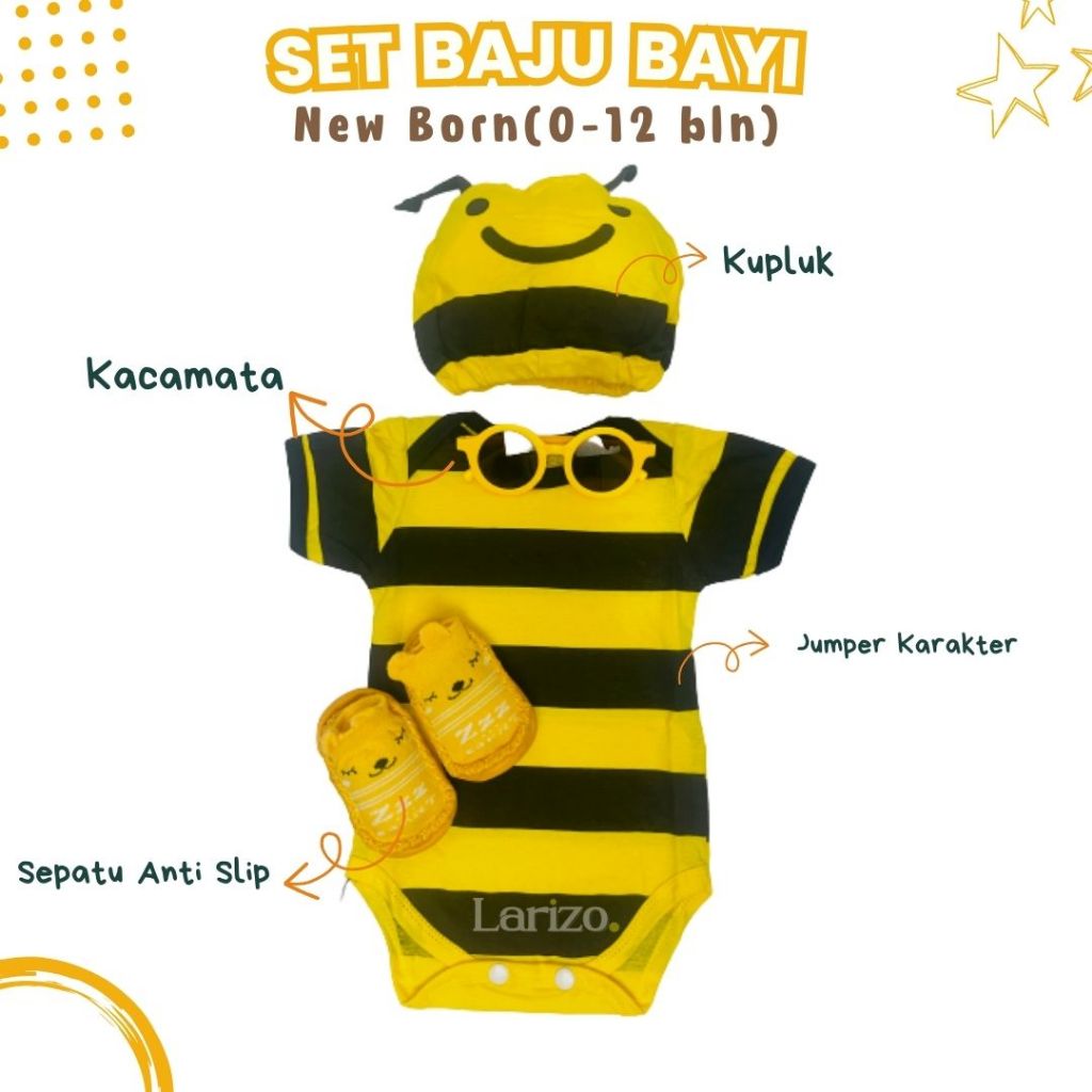 Set Baju Bayi Baby Baru Lahir (0-12 Bln) jumper kacamata sepatu kupluk peci bayi setelan newborn
