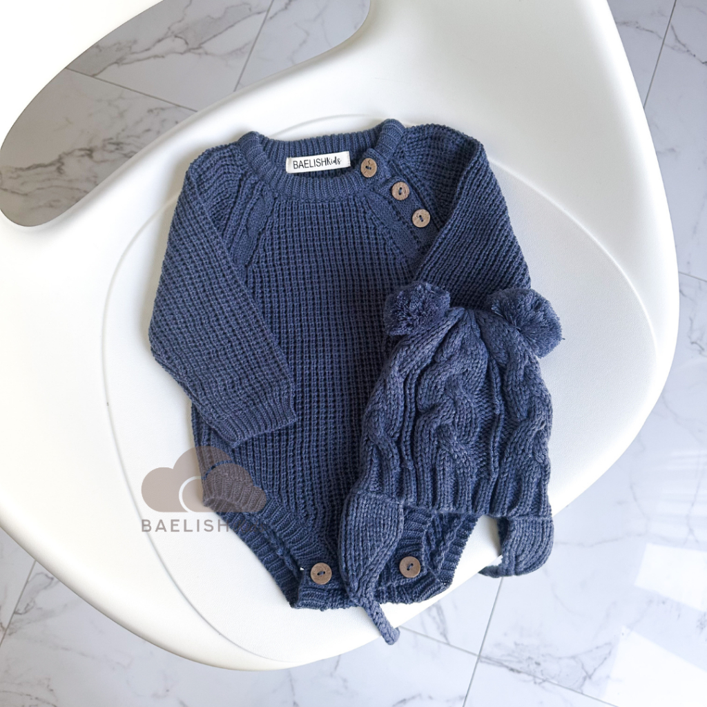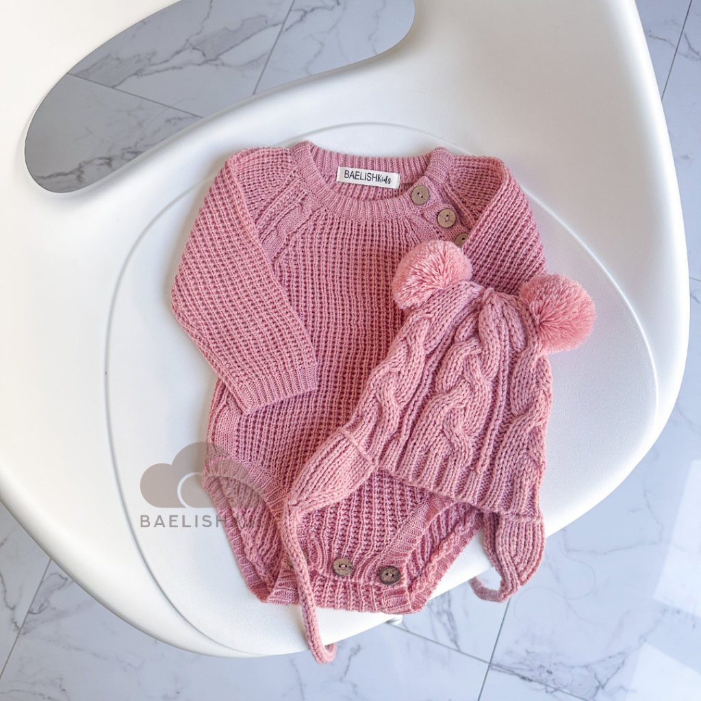 Knit Jumper Dan Kupluk Bayi / Topi Rajut / Beanie Hat / Bodysuit / Romper Baby ( Newborn) Baelish Kids